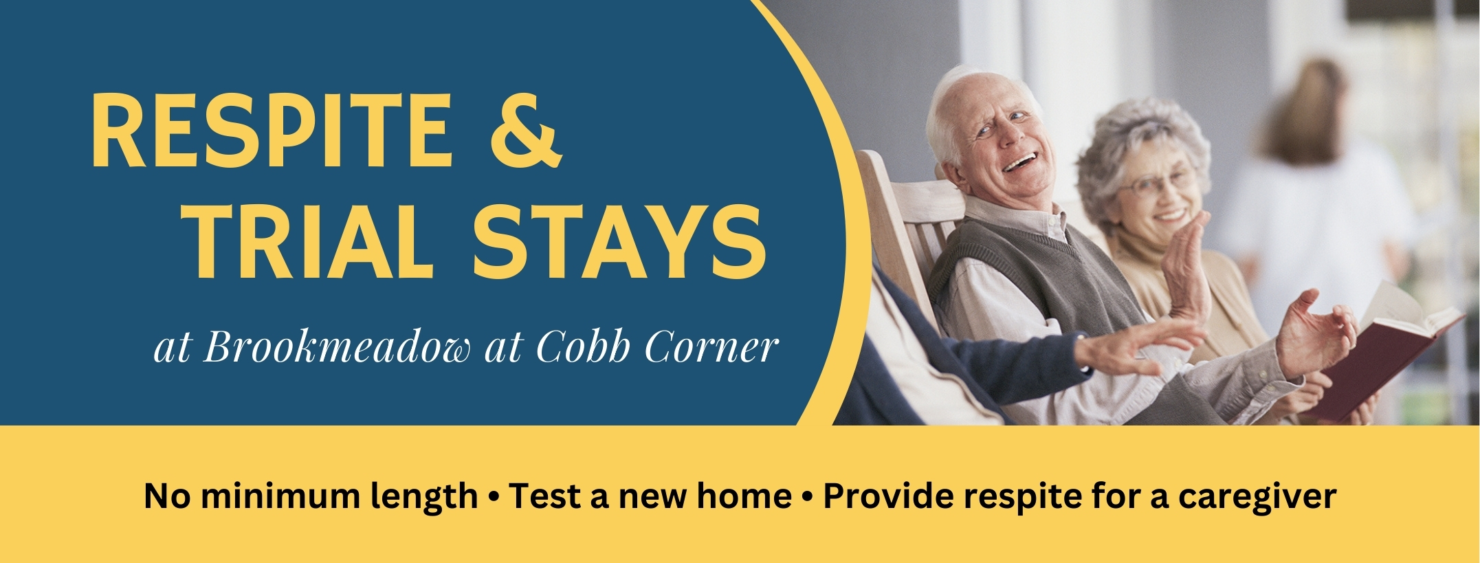 At Brookmeadow, we help families by offering a short-term or trial stay option during vacations, business travel, or when caregivers simply need a break. We are here to care for your loved one while you take time to recharge, offering flexible, no-minimum short-term stay programs in both our Assisted Living and Compass Memory Support Neighborhoods. Residents can stay as long or as short as they need!